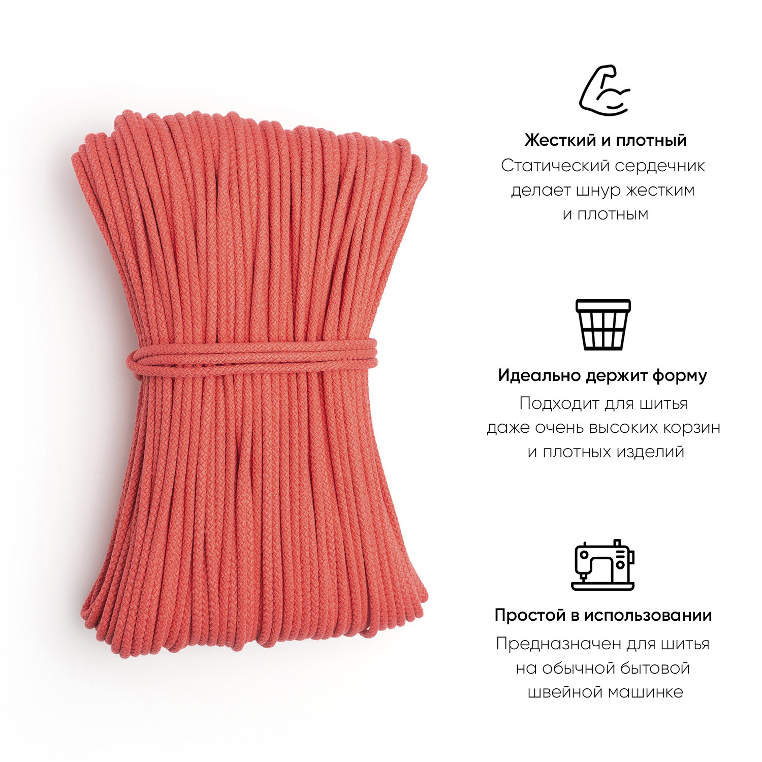 Хлопковый шнур для шитья с сердечником 5 мм/100 м, цвет Клубника