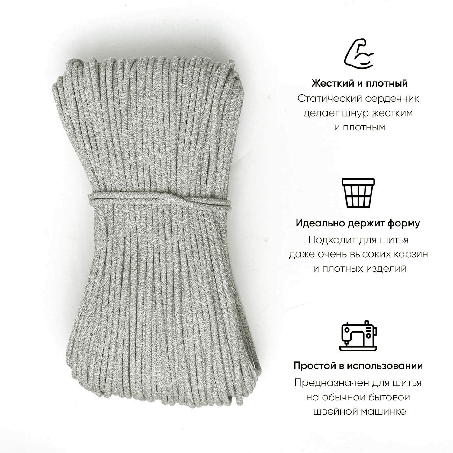 Хлопковый шнур для шитья с сердечником 5 мм/50 м, цвет Серый