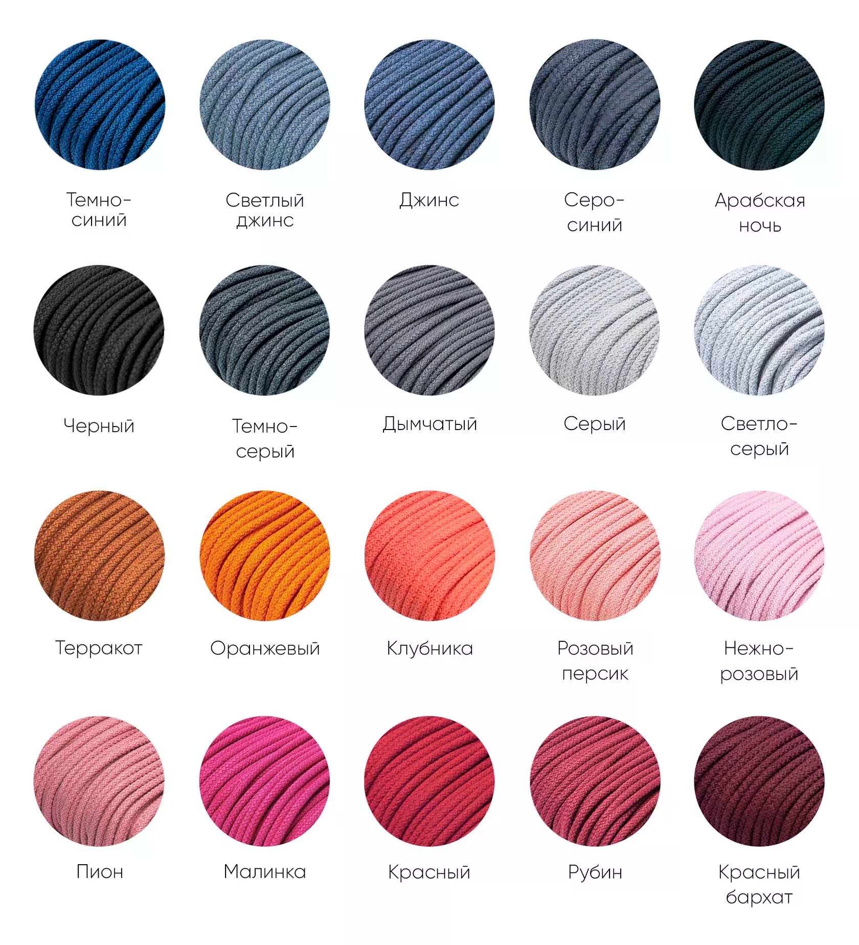 Благодаря огромной цветовой палитре, Вы без труда подберете шнур в цвет основного изделия.