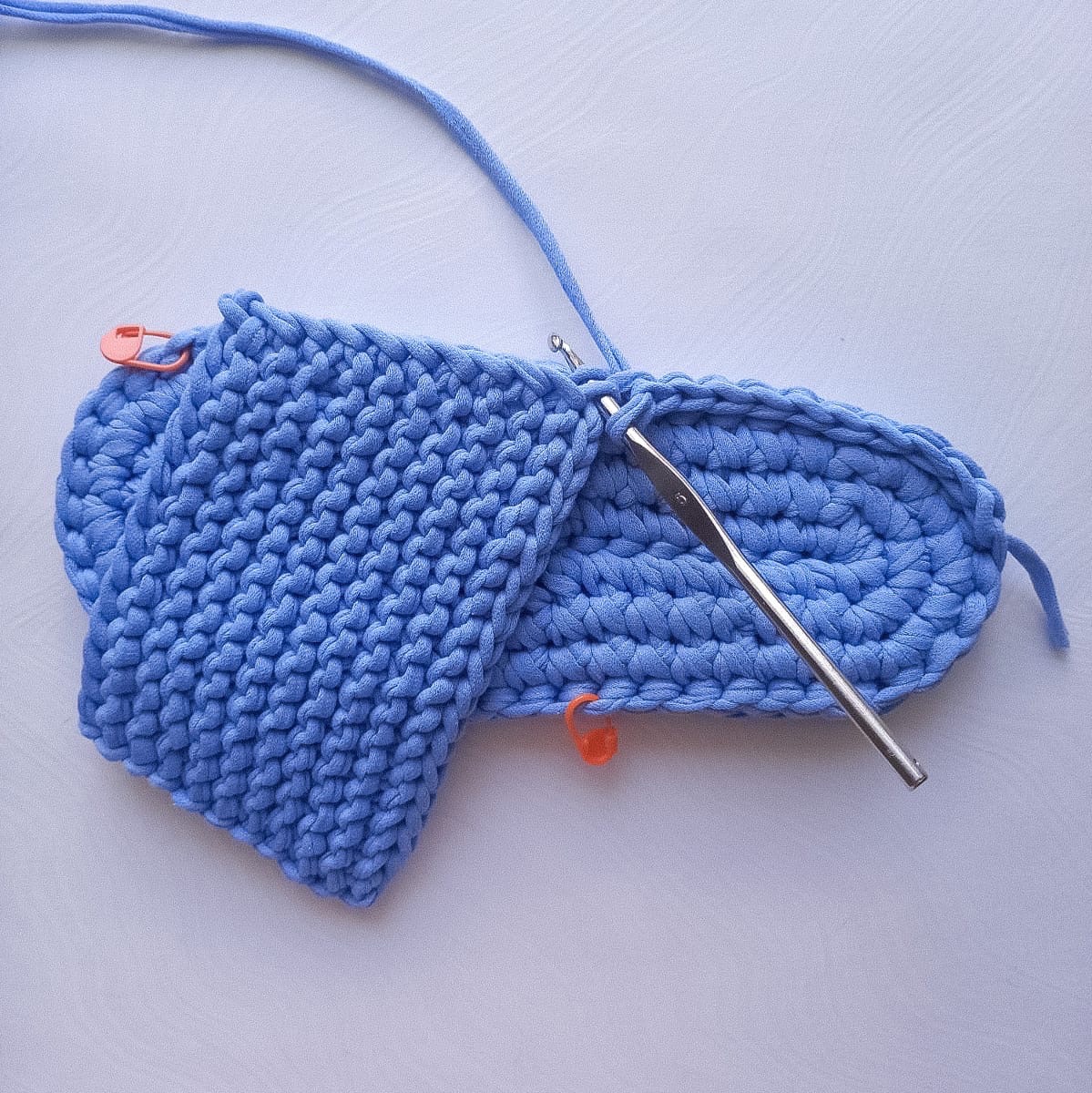 Верх у тапочек с открытым носом можно вязать крючком поворотными рядами или на спицах. В сегодняшнем посте мы покажем описание, как связать верх тапок на спицах платочной вязкой.