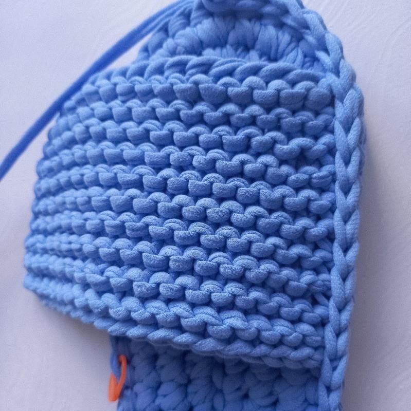 Краевую петлю снимаем, делаем прибавку, 16 петель провязываем лицевыми петлями, прибавка, последнюю петлю провязываем изнаночной петлей. 20 петель. - 15-19 ряды: