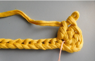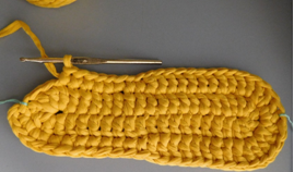 Мы вяжем тапочки 38-39 размера. Если нужен размер меньше, тогда соответственно необходимо провязывать меньшее количество воздушных петель. Например, из данной пряжи для 36-37 размера необходима цепочка из 16 воздушных петель. Так как трикотажная нить бывает разной толщины, то и количество воздушных петель в начале вязания может отличатся в зависимости от размера Вашей ноги.