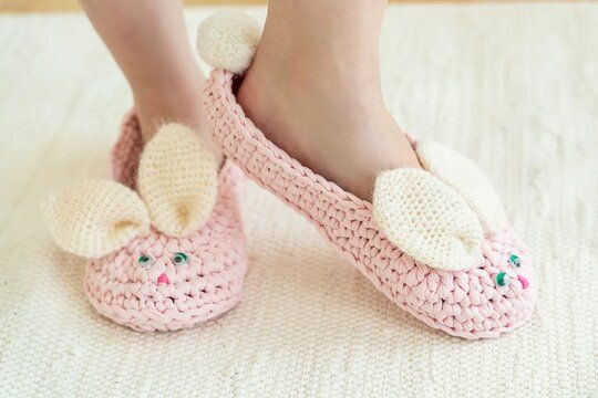 Для вязания тапок желательно использовать не толстую трикотажную пряжу.