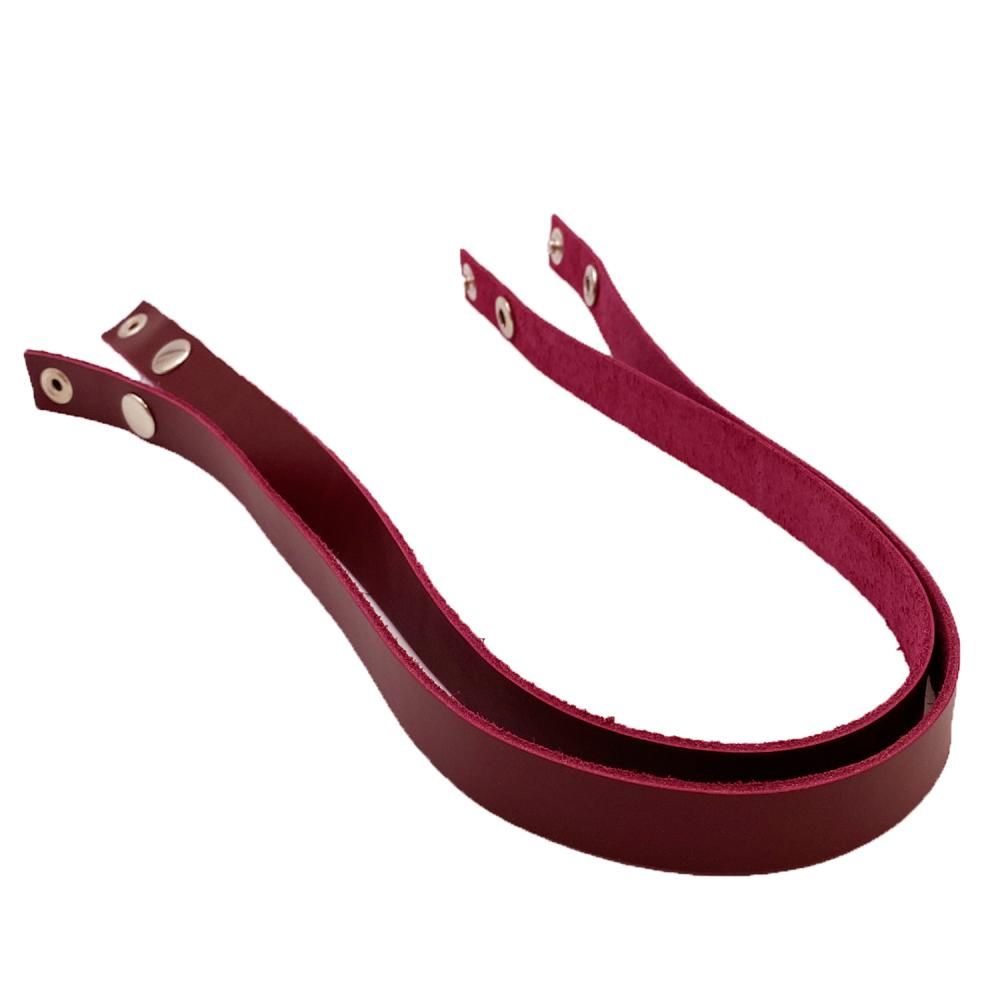 РКД-11 Кожаные ручки для сумки с серебряными кнопками (цена за пару), 59 см, Марсала