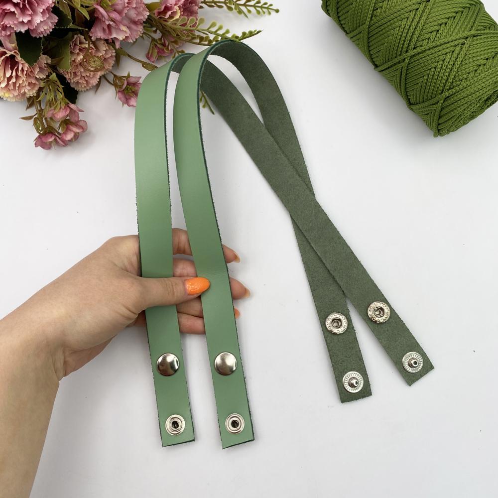 РКС-20 Кожаные ручки для сумки с серебряными кнопками (цена за пару), 49 см, Мята