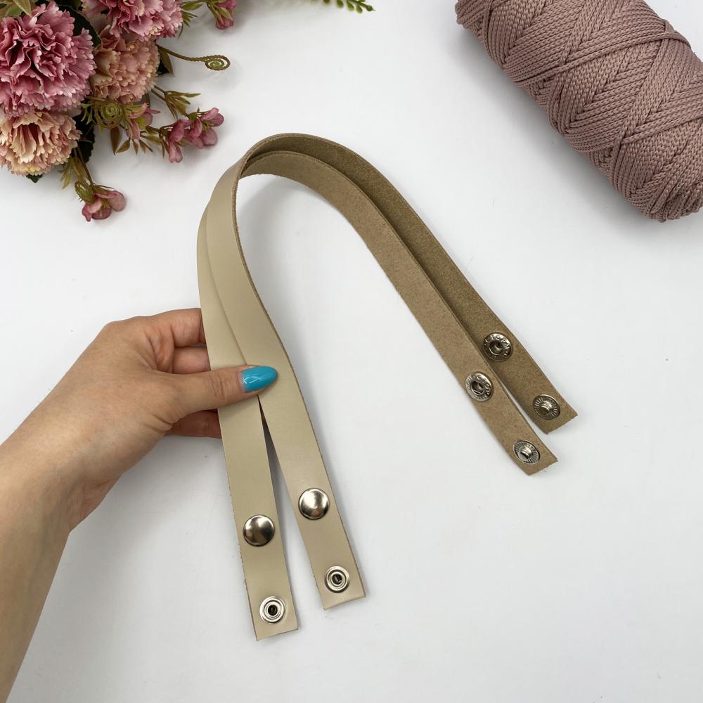 РКК-31 Кожаные ручки для сумки с серебряными кнопками (цена за пару), 40 см, Капучино