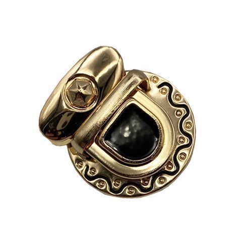 827 Замок портфельный золотой с черным 32х35 мм, золото