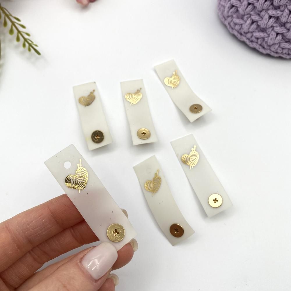 3002 Декоративная бирка из силикона, "Клубок сердце", 5х1,5 см, белая/золото