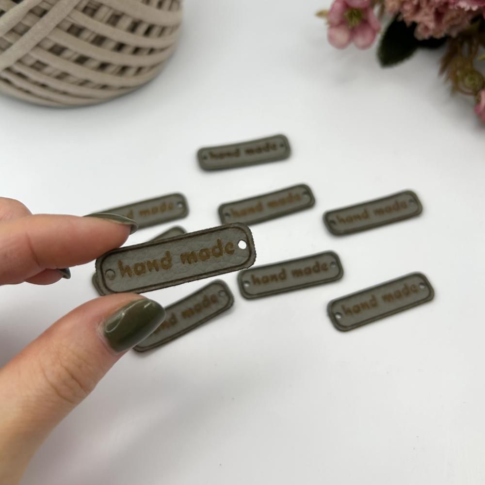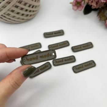 2724-4 Декоративная бирка серая - кож.зам. 40x12мм