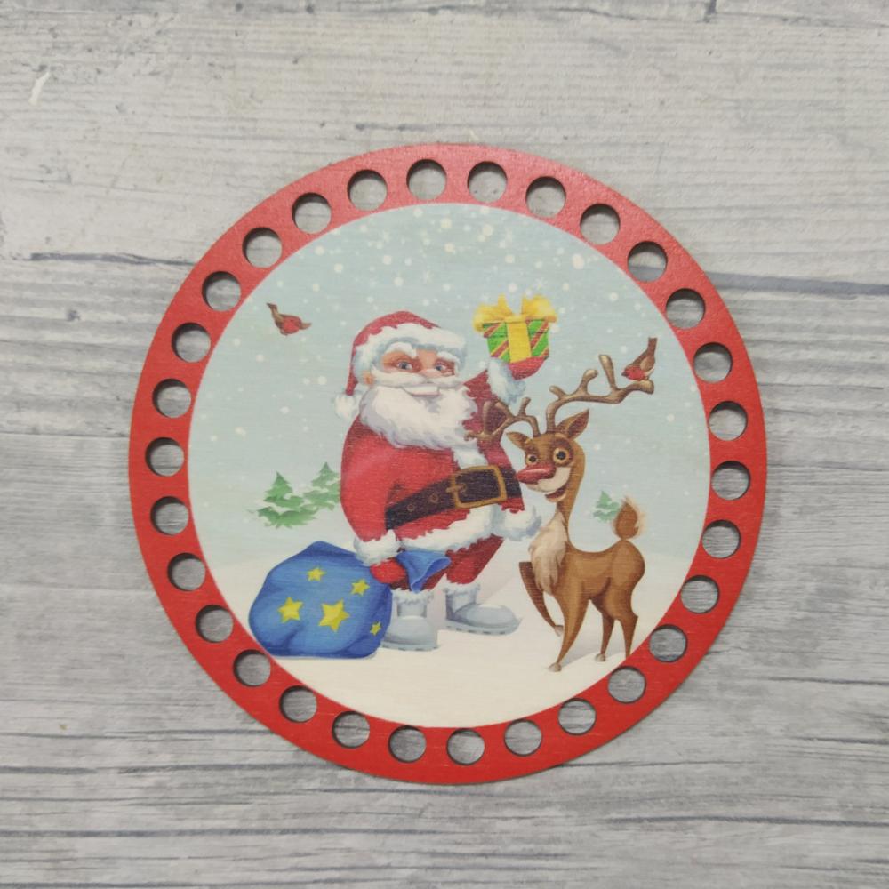 1329-7 Деревянная крышка с рисунком "Дед Мороз в лесу", 15 см