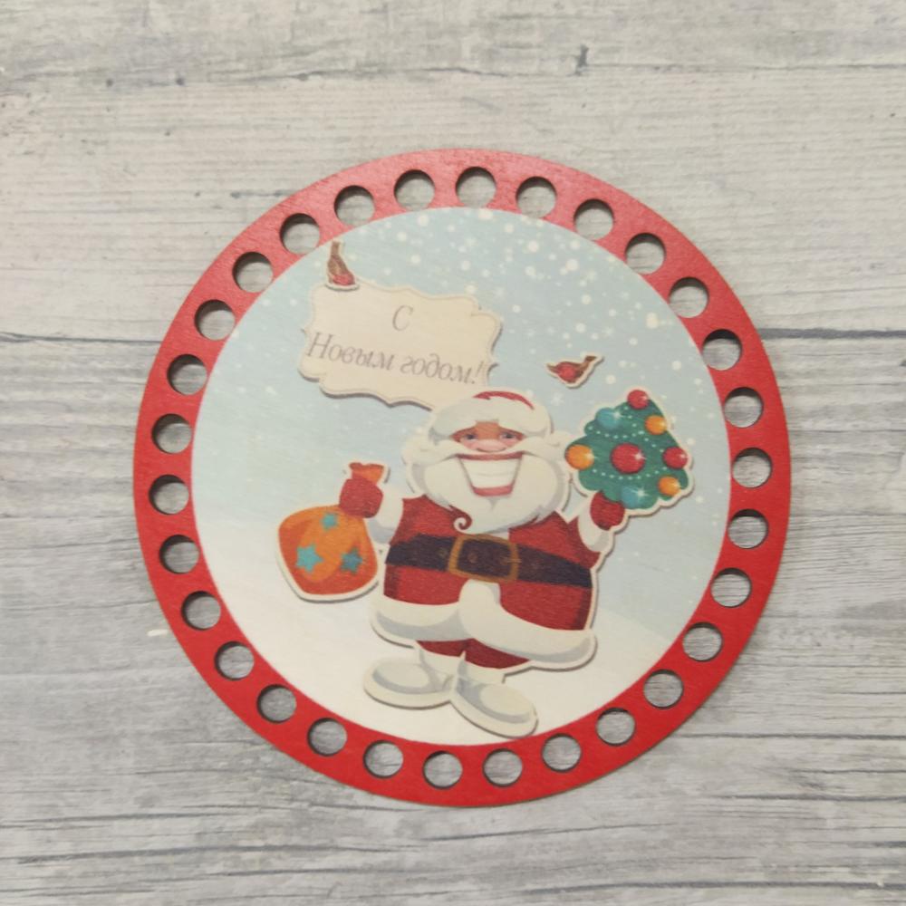 1329-8 Деревянная крышка с рисунком "С Новым годом", 15 см