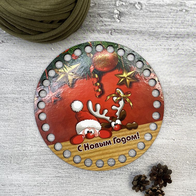 Деревянная заготовка из ДВП для вязания из трикотажной пряжи. Предает жесткость дну корзинки и устойчивость. Цветная печать на глянцевой пленке.Характеристики