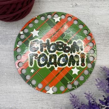 2807 Деревянная крышка с рисунком "С Новым Годом! Зелёные полоски", 15 см