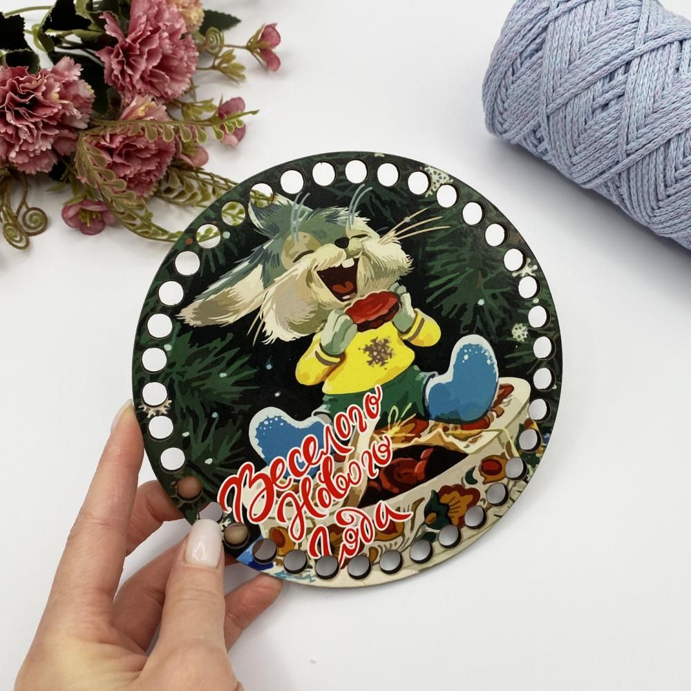 1422 Деревянная крышка с рисунком "Зайка и сладости", 15 см