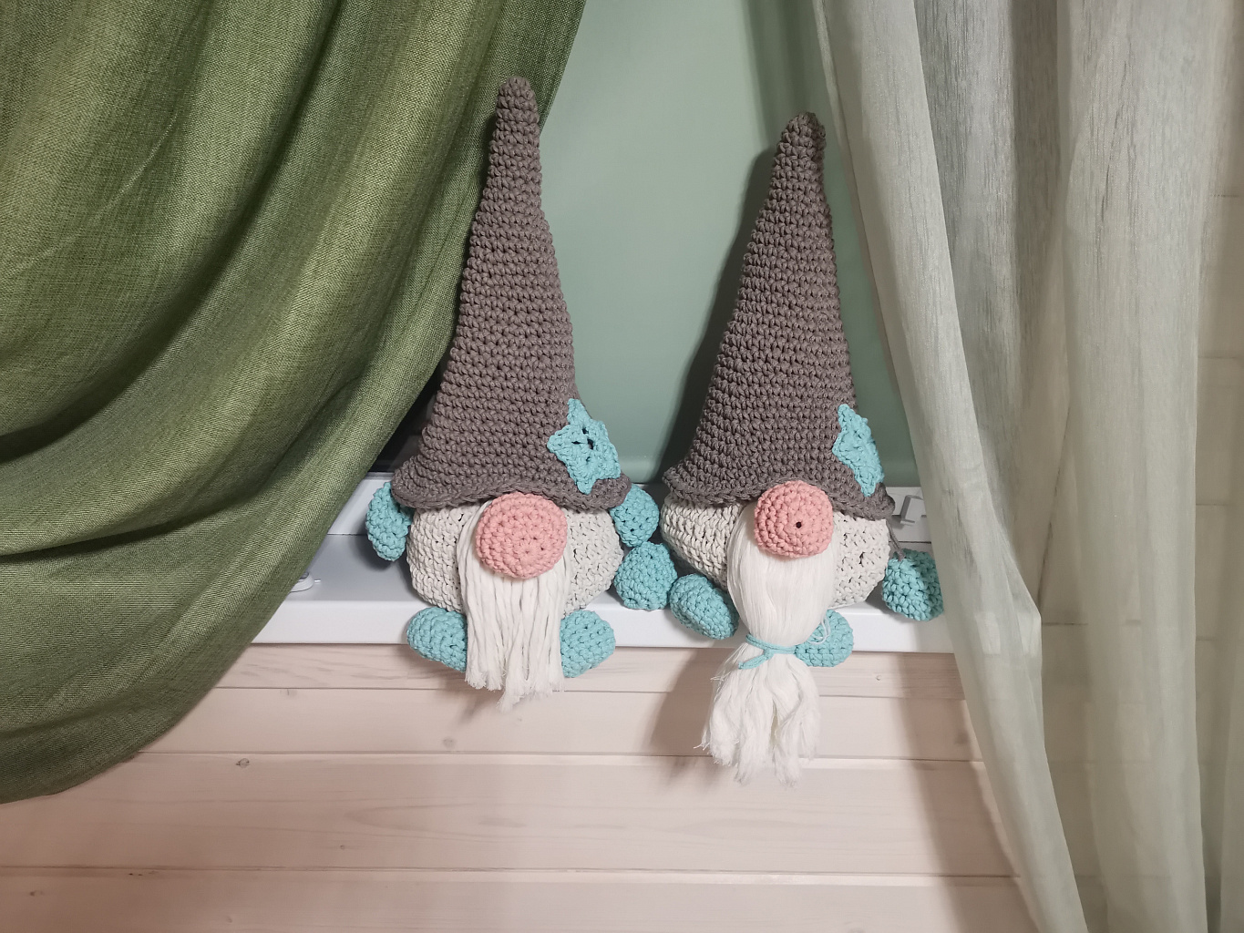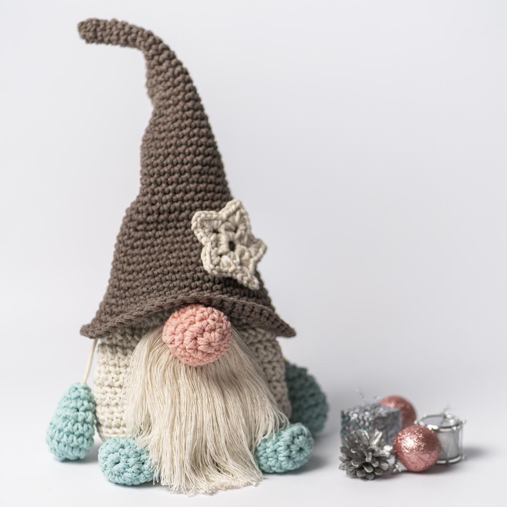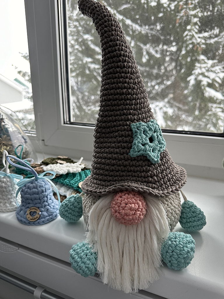 Очень классный набор! Единственное у меня не получается затянуть корзинку когда тянешь за обе «руки» гнома. И я решила звездочку сделать бирюзовой.