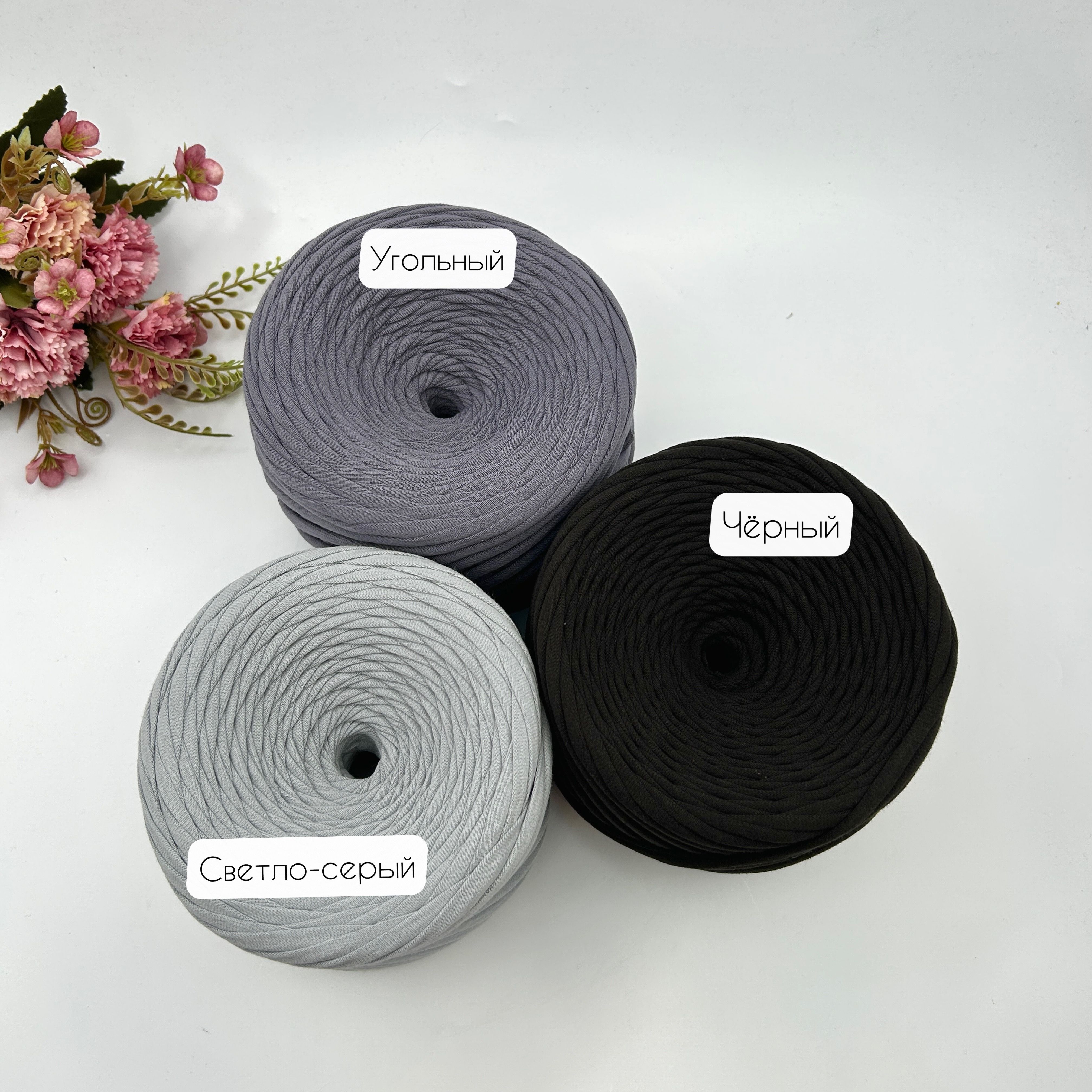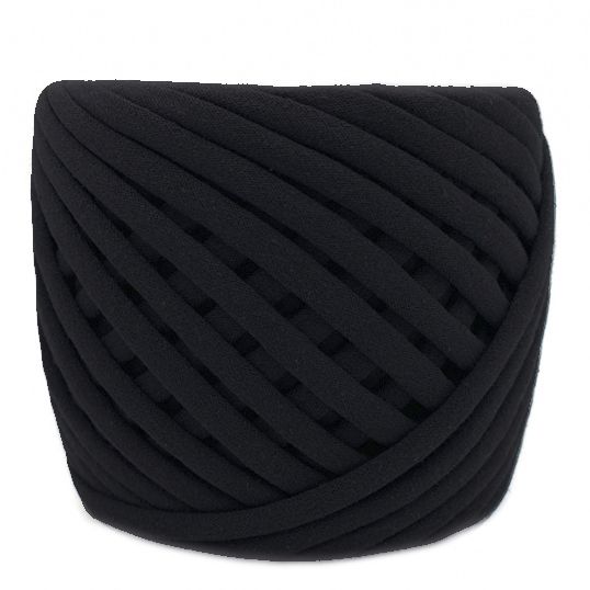 Трикотажная пряжа Hobyt ТП 069 Чёрная, первичная, изнаночная, 100% хлопок, 100 м, 7-9 мм