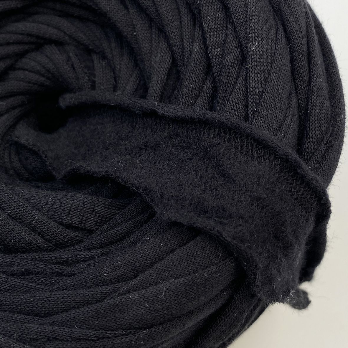 Трикотажная пряжа Hobyt Black-VMF2 Чёрная, футер, резинка, вторичная, лицевая, 100% хлопок, 60 м, 220 г, 7-9 мм