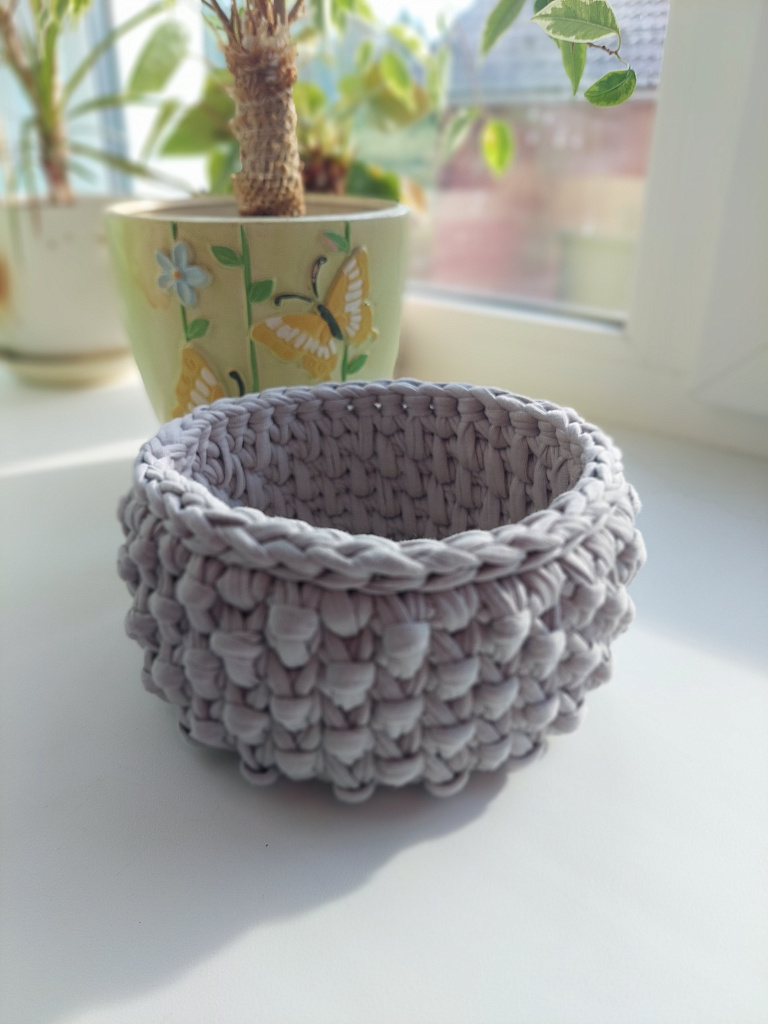 Пряжа хорошая качественная очень понравилось. С одного мотка вышла маленькая корзина