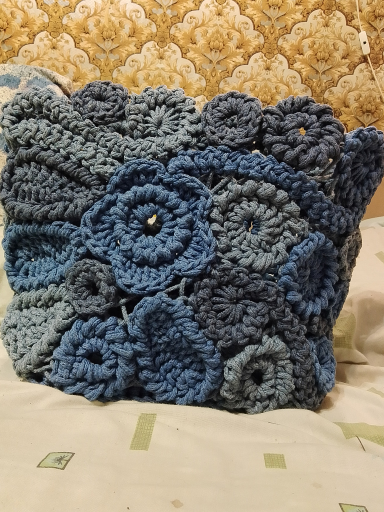 Связала сумку в технике ирландского кружева: светлый джинс, джинс, тёмный джинс.