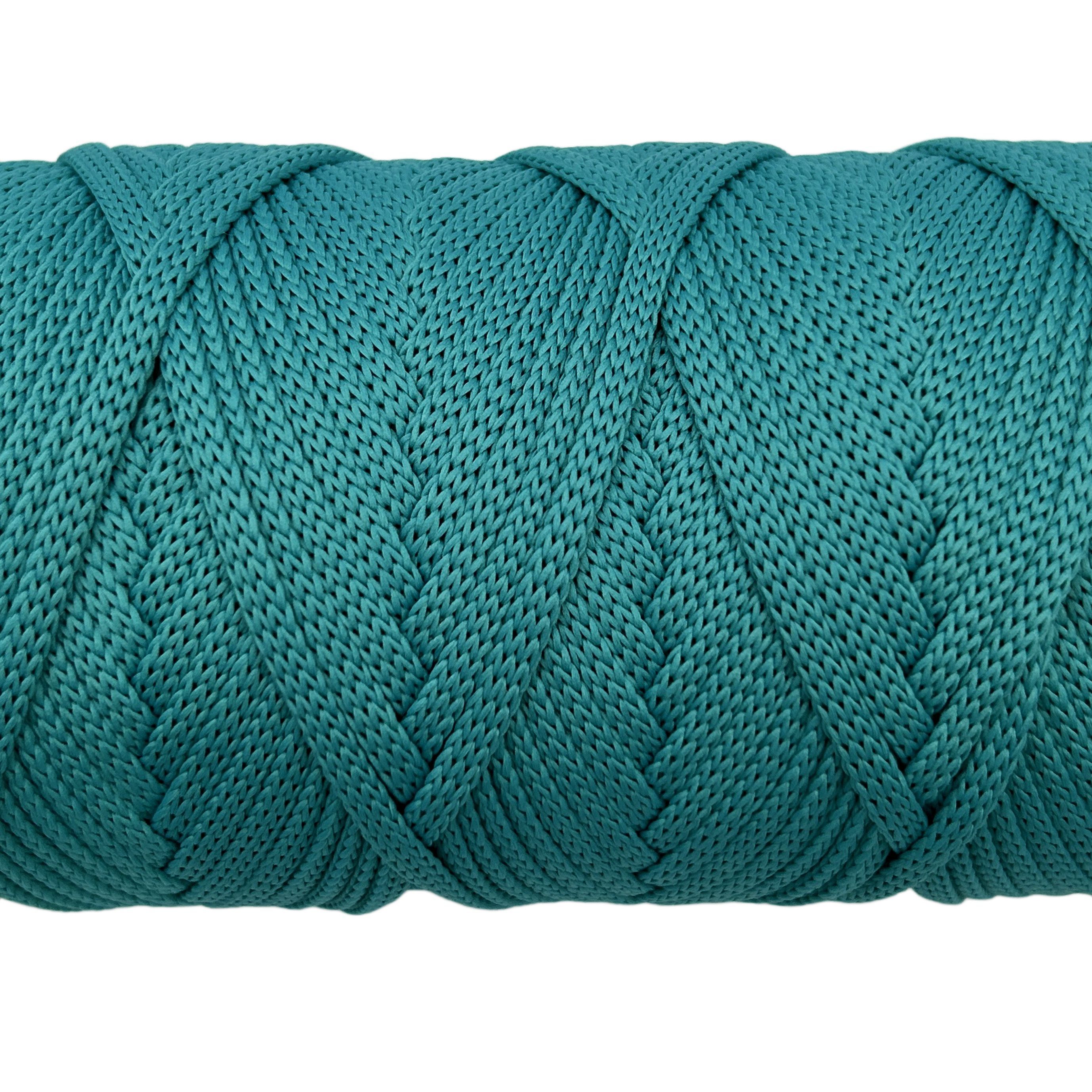 Облегченная версия полиэфирного шнура без сердечника диаметром 4 мм цвет Бирюза отличается повышенной мягкостью и эластичностью за счет более тонкого плетения нитей.Шнур плоскийТакой тип шнура более подвижный, мягкий, слегка растягивается. Отлично подходит для вязания салфеток,сумок,ковров и корзин.