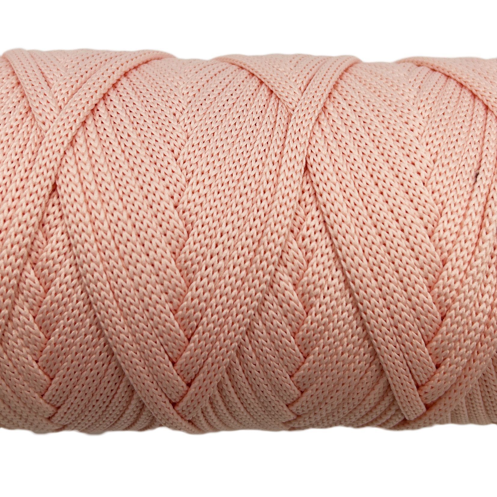 Облегченная версия полиэфирного шнура без сердечника диаметром 4 мм цвет Светло-розовый отличается повышенной мягкостью и эластичностью за счет более тонкого плетения нитей.Шнур плоскийТакой тип шнура более подвижный, мягкий, слегка растягивается. Отлично подходит для вязания салфеток,сумок,ковров и корзин.