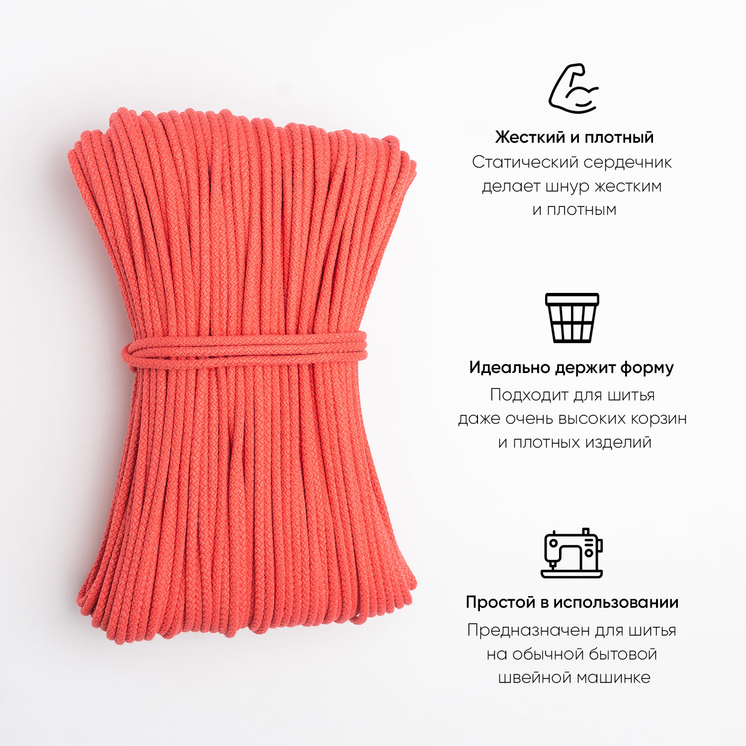 Хлопковый шнур для шитья с сердечником 5 мм/50 м, цвет Клубника