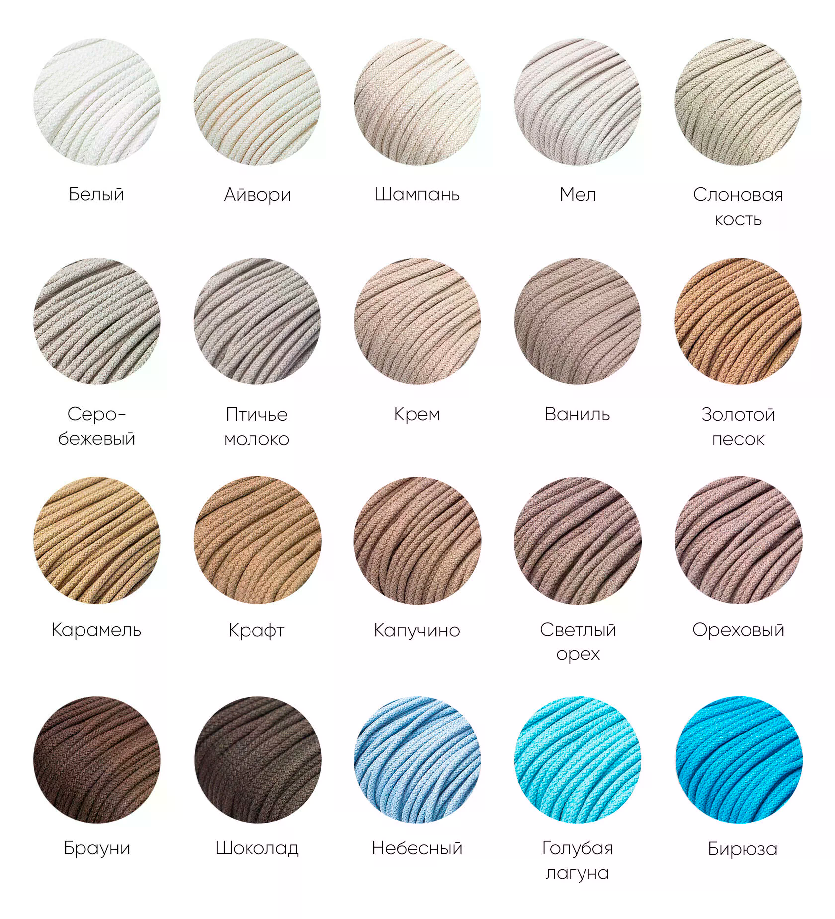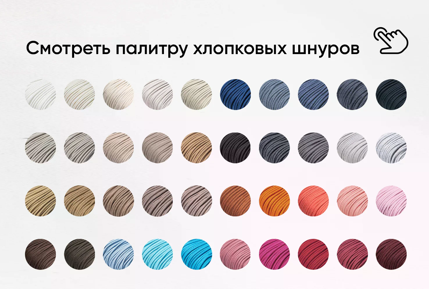 Благодаря огромной цветовой палитре, Вы без труда подберете шнур в цвет основного изделия.